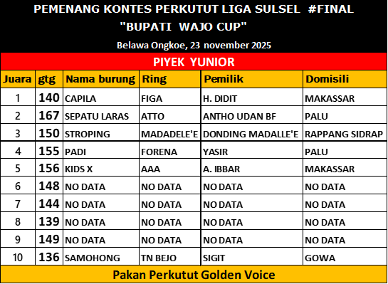 Komunitas Kung Mania kini menantikan agenda besar berikutnya, dengan harapan kualitas perkutut Sulawesi semakin bersinar di tingkat nasional.@terataibf.