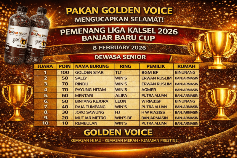 “Performa Golden Star memang luar biasa konsisten. Tidak heran burung ini berhasil merajai kategori senior,” ujar salah seorang juri yang enggan disebutkan namanya.