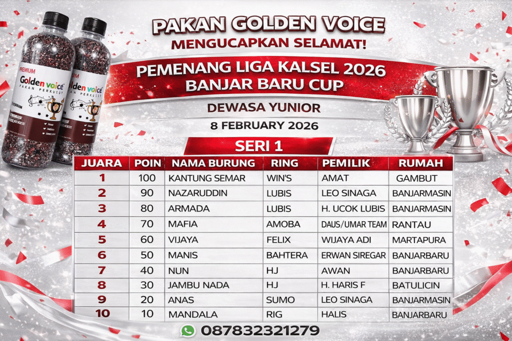 Seri perdana ini menjadi pembuka yang sangat positif bagi perjalanan liga musim 2026. Dengan materi burung yang semakin merata dan munculnya kekuatan-kekuatan baru, putaran berikutnya dipastikan akan makin panas dan menarik untuk dinantikan. (AZIS)