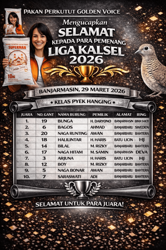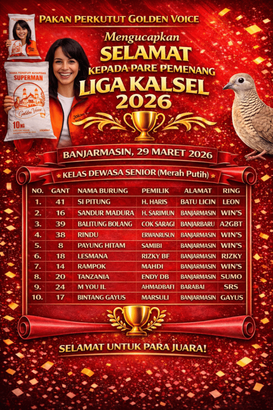 Liga Perkutut KalSel II 2026 pun semakin menegaskan diri sebagai salah satu barometer lomba perkutut bergengsi di Kalimantan, sekaligus ajang pembuktian kualitas burung terbaik dari berbagai daerah.