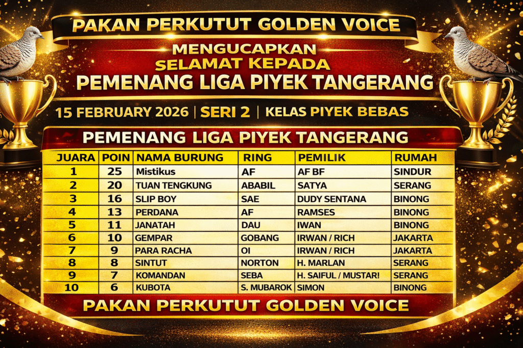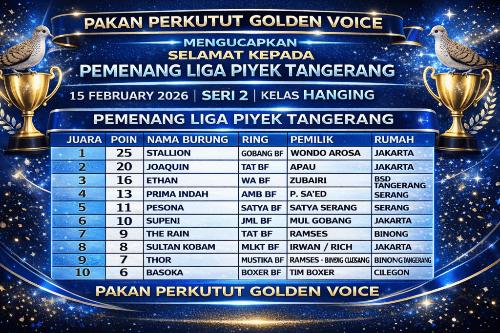 Tangerang-gelaran Liga Perkutut Piyek Tangerang Seri 2 pada 15 Februari 2026 benar-benar menghadirkan drama yang sulit dilupakan. Sejak gantangan dibuka, kelas piyek bebas langsung panas. Materi muda dengan kualitas di atas rata-rata membuat juri harus bekerja ekstra, sementara para pemilik tegang memantau setiap angkatan.
