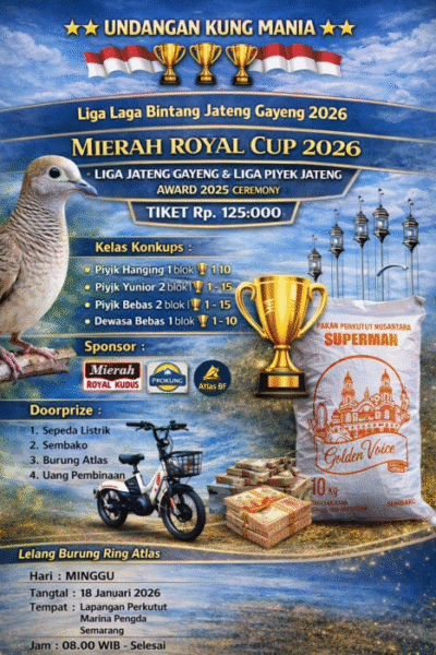 Terimakasih atas bantuan sharenya Goldenvoicenews.com – Lapangan Perkutut Karanggayam, Jl. Sendok, Yogyakarta, pada 28 Desember 2025 tampil sebagai pusat perhatian kung mania lintas daerah. Melalui tajuk End of Year Cup…