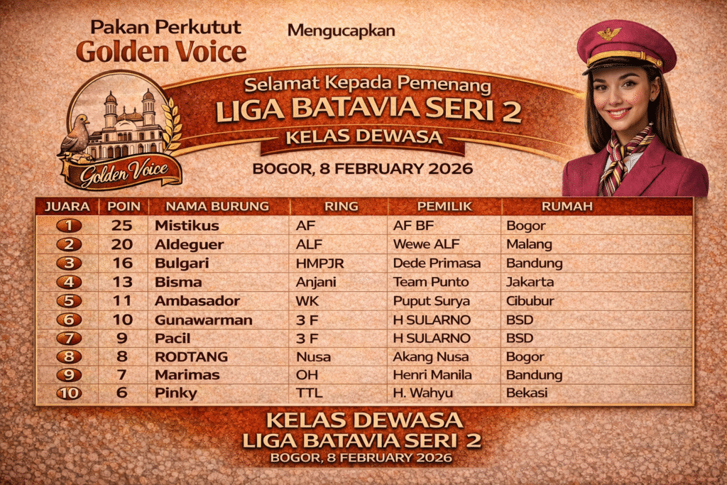 Bogor-Liga Batavia Seri 2 yang digelar di Nusa BF, Bogor, Minggu 8 Februari 2026, berlangsung dalam kondisi cuaca yang kurang bersahabat. Gerimis turun sejak awal lomba, membuat sebagian besar burung tidak mampu menampilkan performa terbaiknya. awal babak biasanya langsung tancap gass kali ini kelihatan melempem kayak krupuk kena kuah “sayur asem”, bahkan terlihat beberapa jagoan yang biasa tampil ngedan kali ini justru membuat pemiliknya “edan”, diem manyun cengar cengir.